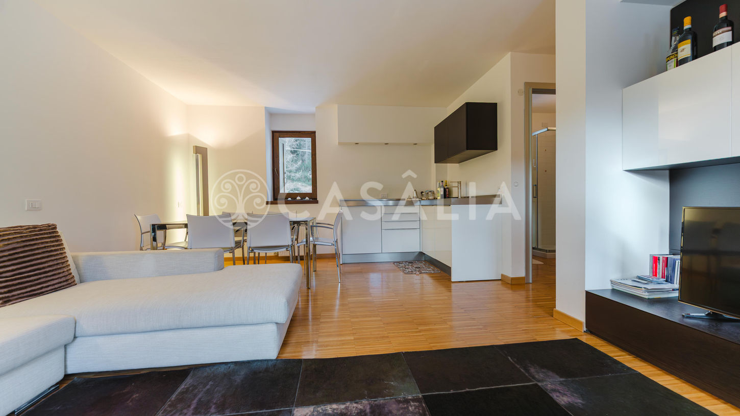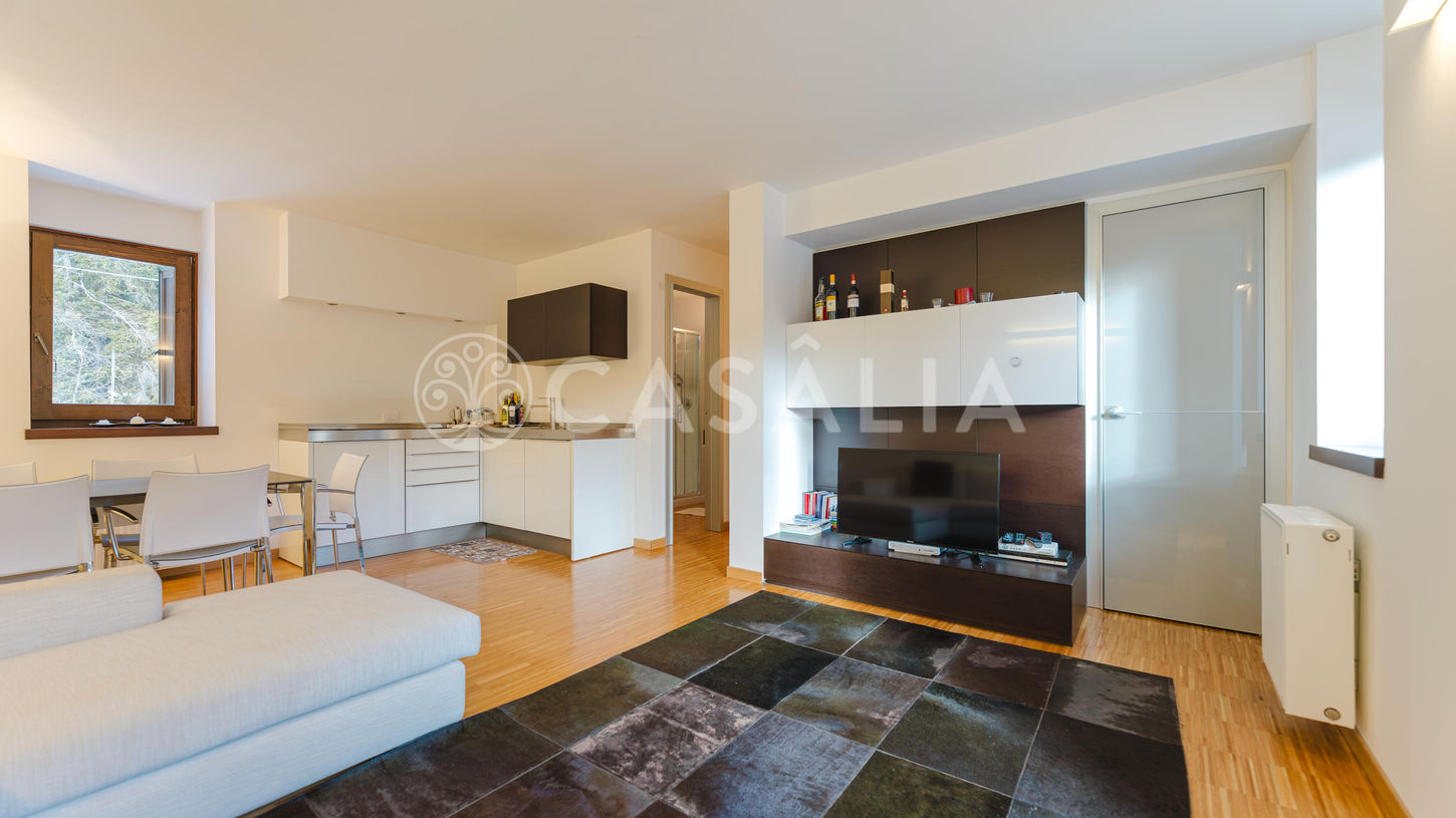 Questo esclusivo appartamento trilocale duplex in stile mansarda si trova al secondo e terzo piano di un complesso multifamiliare a Cortina d'Ampezzo. L'immobile è in condizioni eccellenti, paragonabili al nuovo. Al secondo piano, la zona giorno offre un soggiorno con cucina a vista e accesso diretto a un poggiolo con vista panoramica sul Passo Tre Croci, oltre a un primo bagno completo. Una scala interna conduce al terzo piano (sottotetto), dove si trova la zona notte composta da una camera matrimoniale, una camera secondaria, un secondo bagno e zone ripostiglio/guardaroba integrate. Le finiture e il contesto alpino di alto pregio rendono questa proprietà un investimento ideale in una delle località più prestigiose delle Dolomiti.